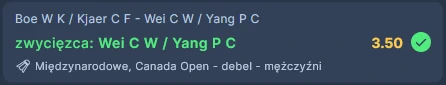 Mecz: Boe W K / Kjaer C F – Wei C W / Yang P C