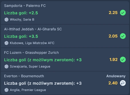 Typ: Liczba goli (z możliwym zwrotem) over 2
