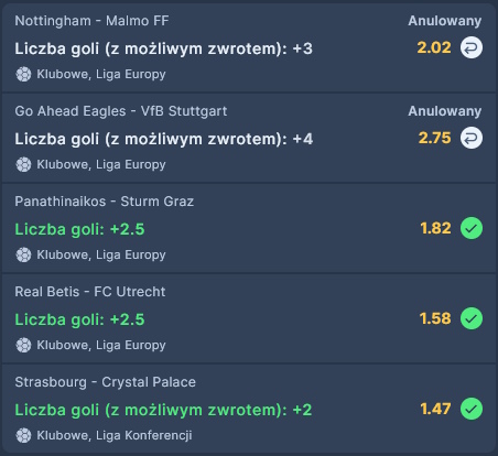 Typ: Liczba goli (z możliwym zwrotem) over 3